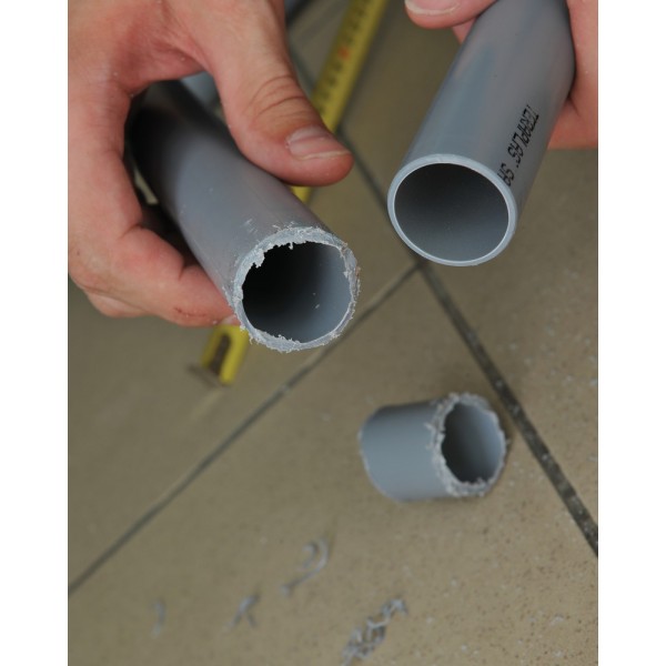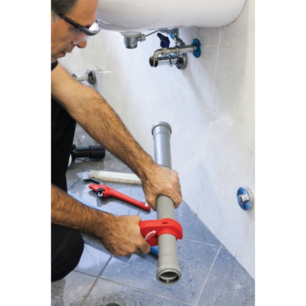 - Umožňuje řezat dvouhrdlovou 50mm plastovou odpadní trubku.